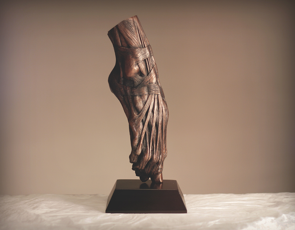 En Pointe is a hand-sculpted casting of the muscles and tendons of the human foot and ankle in the posture of a dancer On Point.